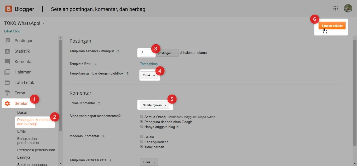 Terakhir, Setting Blog seperti screenshot berikut ini.